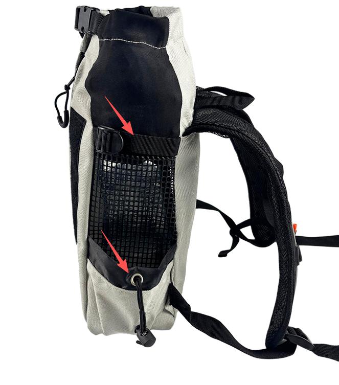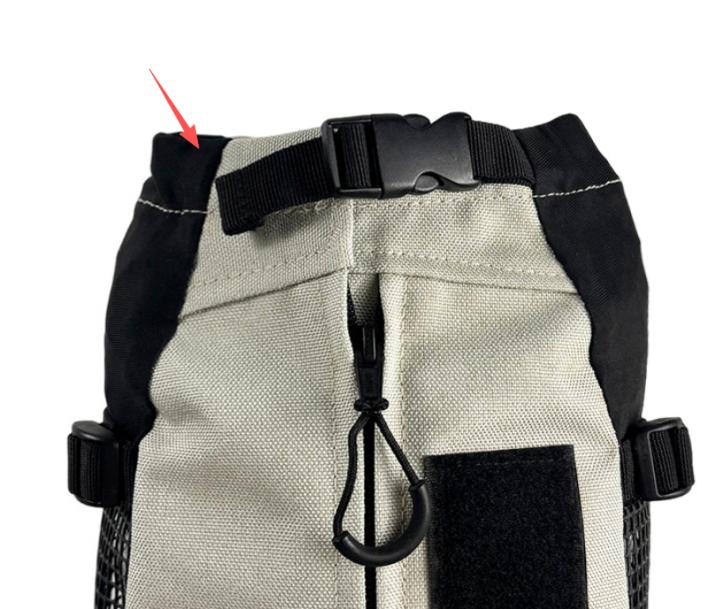 8.Notentriegelungsfunktion— Ein simples, aber effizientes Design: ein Schnellverschluss und ein vertikaler Reißverschluss entlang der gesamten Rucksacklänge. Dank dieses Mechanismus lässt sich der Rucksack in nur 3 Sekunden vollständig öffnen, sodass der Besitzer den Hund im Notfall schnell herausnehmen kann.