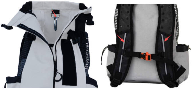9. SicherheitsschutzsystemDer Rucksack ist mit einer Sicherheitsschnalle ausgestattet, die ein versehentliches Lösen verhindert und in Kombination mit dem Hundehalsband dafür sorgt, dass der Hund bei einer Notbremsung sicher an seinem Platz bleibt. Die reflektierenden Streifen befinden sich an den Schultergurten (und bedecken nicht die gesamte Tasche), um die Aufmerksamkeit des Fahrers nicht durch starkes Licht zu blenden und gleichzeitig die Sichtbarkeit für den Gegenverkehr zu gewährleisten.
