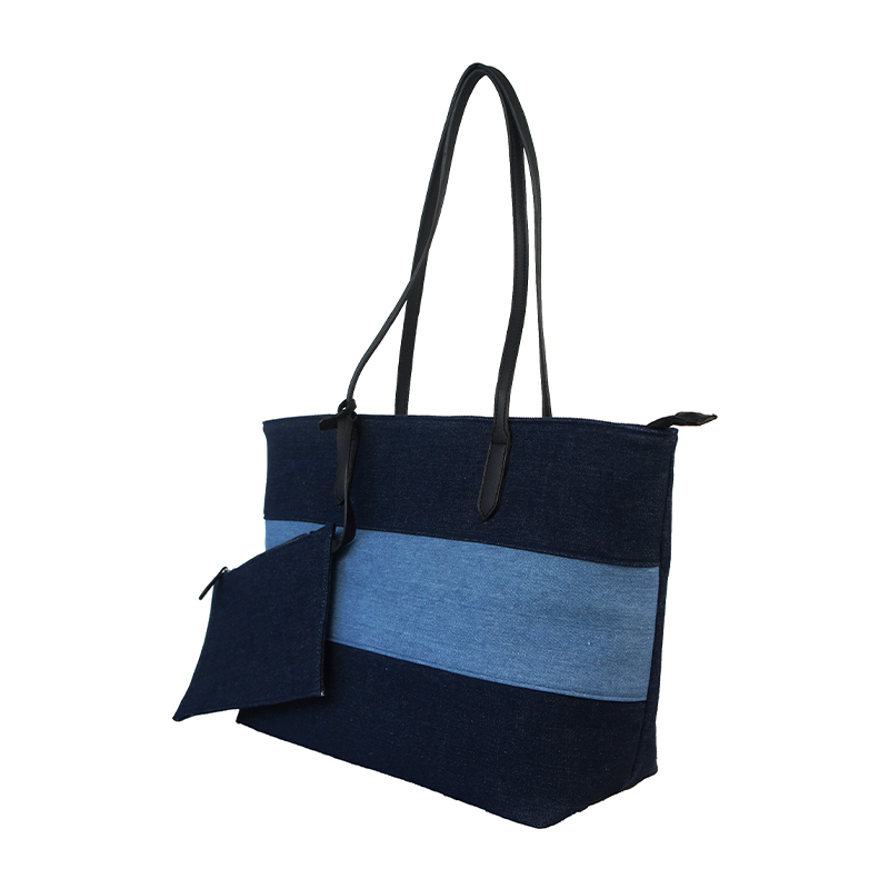 This women's denim bag combines fashion and practicality with a striking two-tone design in dark and light blue. Paired with a high-quality detachable small pouch, it offers a versatile solution for both work and casual outings, making it a standout denim hand bag for daily use.