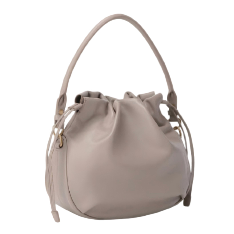 0.98 lbMade with soft leather on the exterior and matching fabric on the inside, this handbag features a drawstring closure with two cords that gather the bag's opening, creating distinctive pleats. When the strings are loosened, the leather bag opens into a half-moon shape, providing ample space for everyday essentials. The single handle adds to its minimalist appeal, making it light and easy to carry.