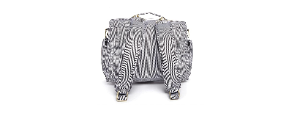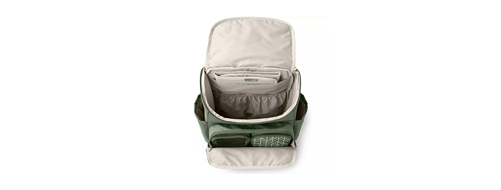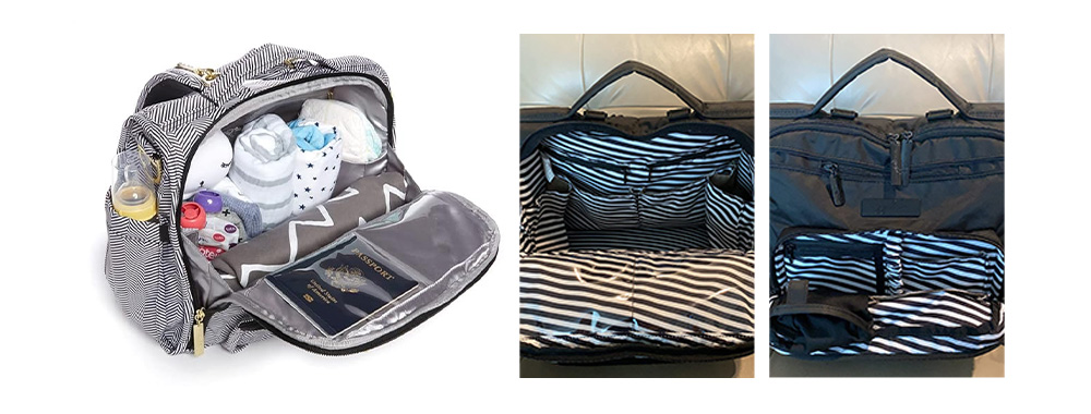 Innenaufteilung und Fassungsvermögen: Die Innenaufteilung ist relativ traditionell und schlicht. Sie umfasst typischerweise einige Hauptfächer, Seitentaschen, ein isoliertes Flaschenfach und eine herausnehmbare Wickelunterlage. Die Anzahl der Fächer und die funktionale Gestaltung (wie z. B. separate Nassfächer und stark unterteilte Taschen) sind nicht so umfangreich und detailliert wie bei professionellen Marken wie Itzy Ritzy, JuJuBe oder Skip Hop.