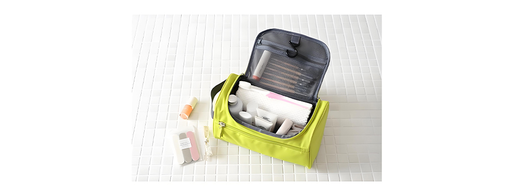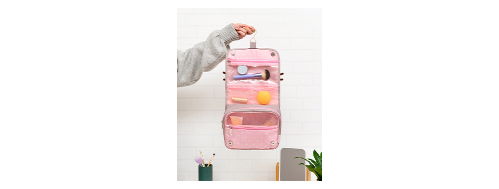 Die Ablagen in Hotelbädern sind im Durchschnitt weniger als 0,5 Quadratmeter groß. Unsere hängende Kosmetiktasche mit 360° drehbarem Metallhaken nutzt den vertikalen Raum optimal für übersichtlichen Stauraum.